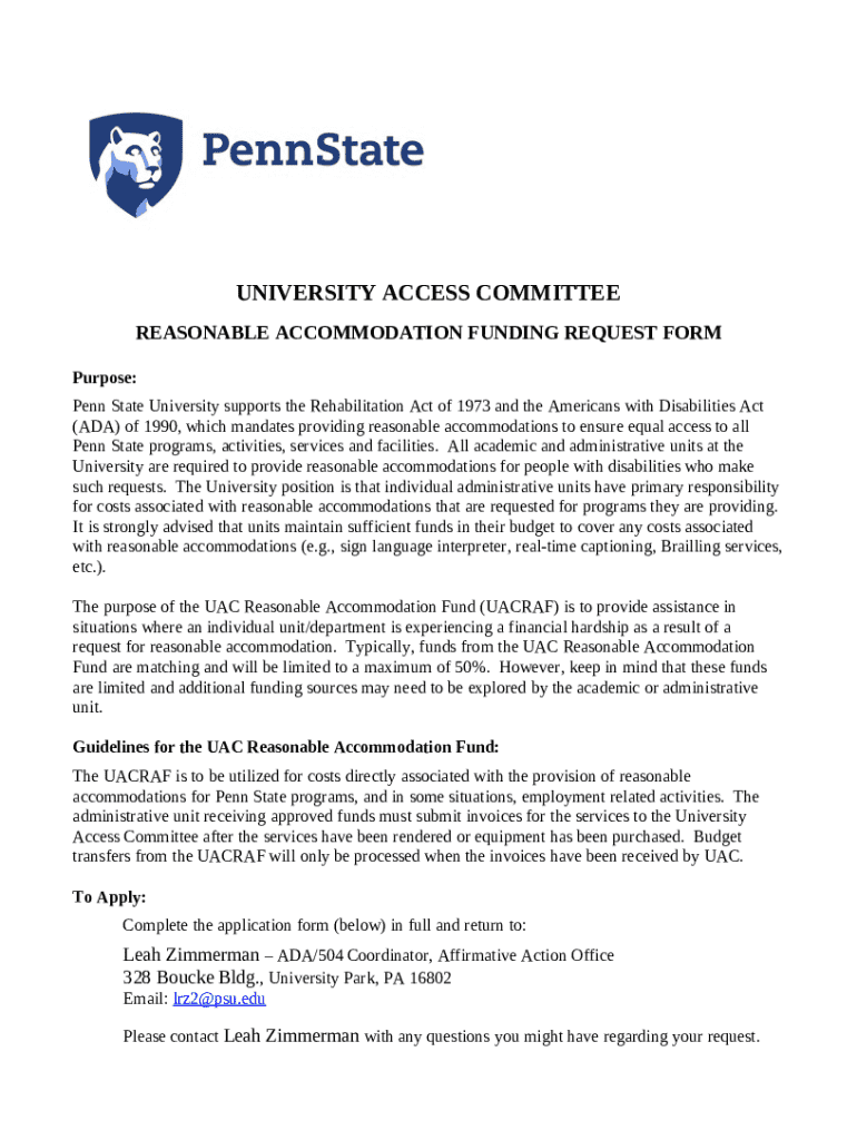 Frequently asked questions about the form Reasonable Accommodation Funding Request