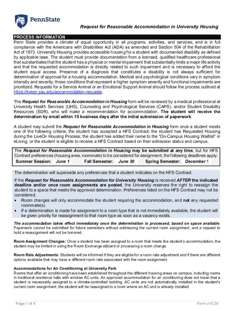 Get the free Request for Reasonable Accommodation in University Housing