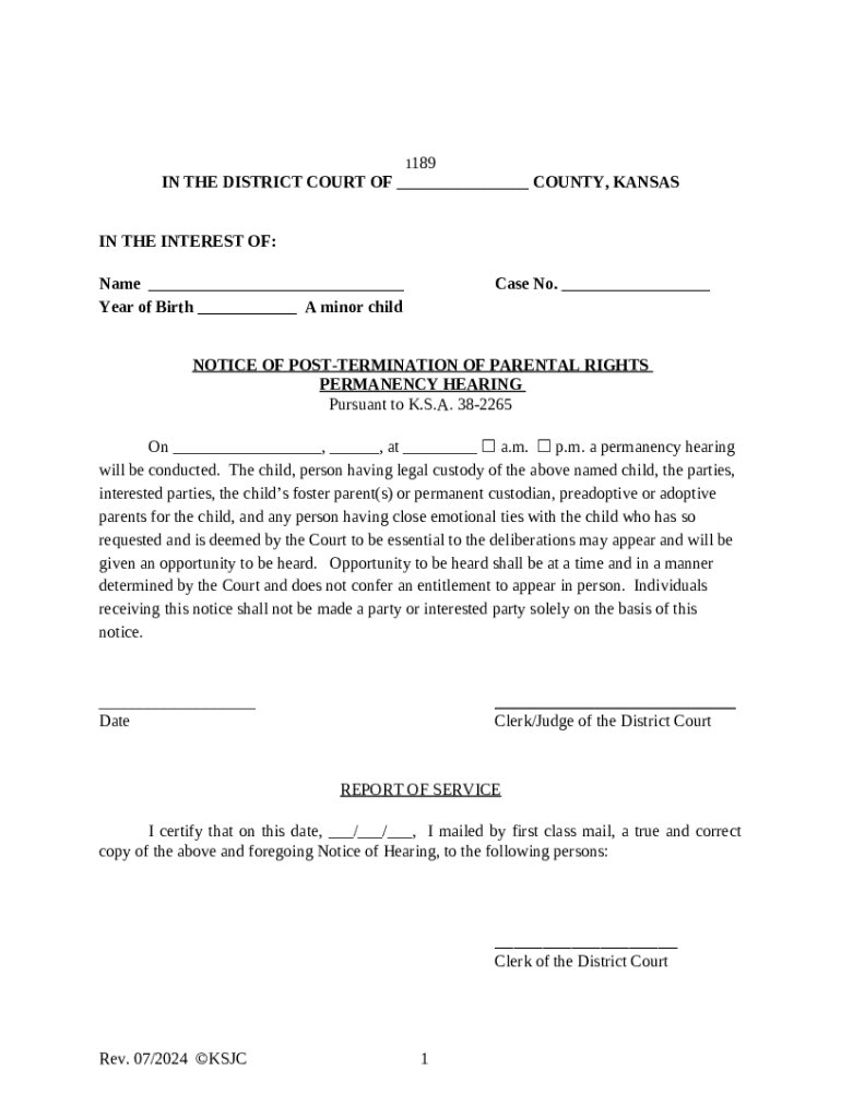 How to fill out Notice of Post-termination of Parental Rights Permanency Hearing