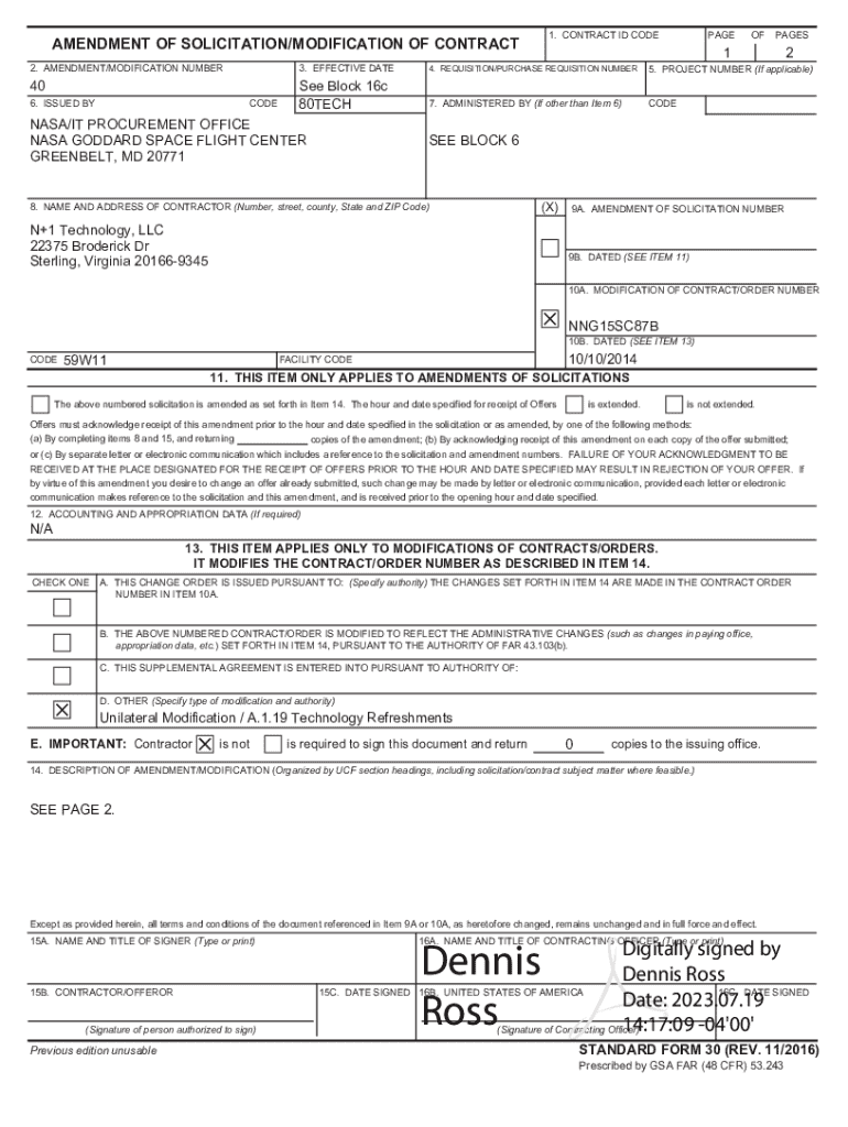 Get the free Amendment of Solicitation/modification of Contract