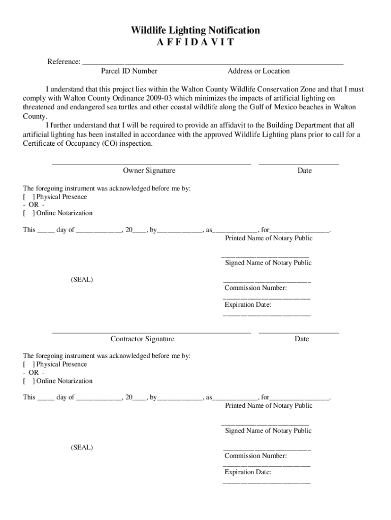Get the free Wildlife Lighting Notification Affidavit