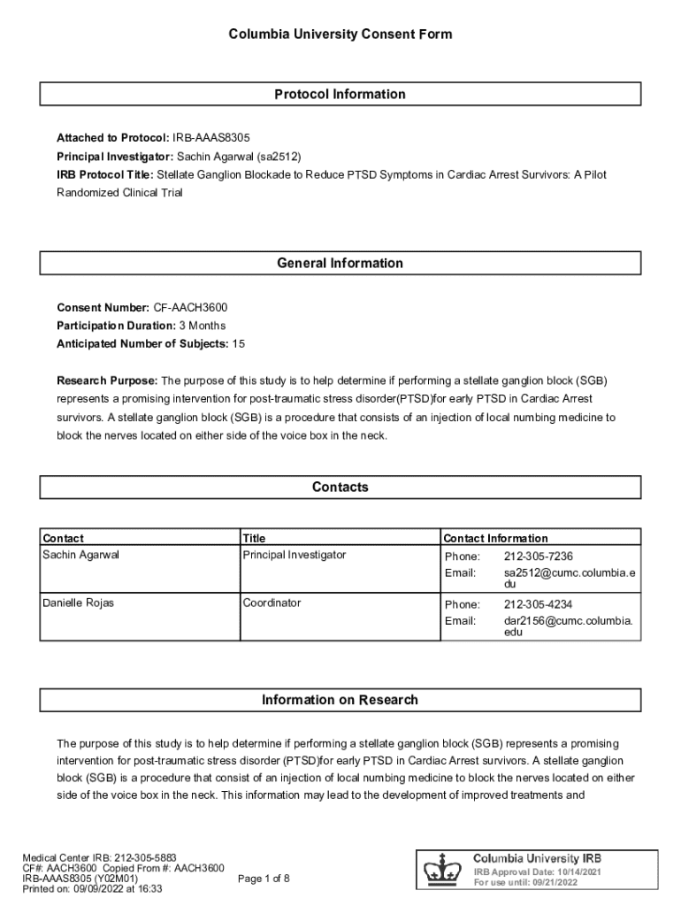 Get the free Columbia University Consent Form