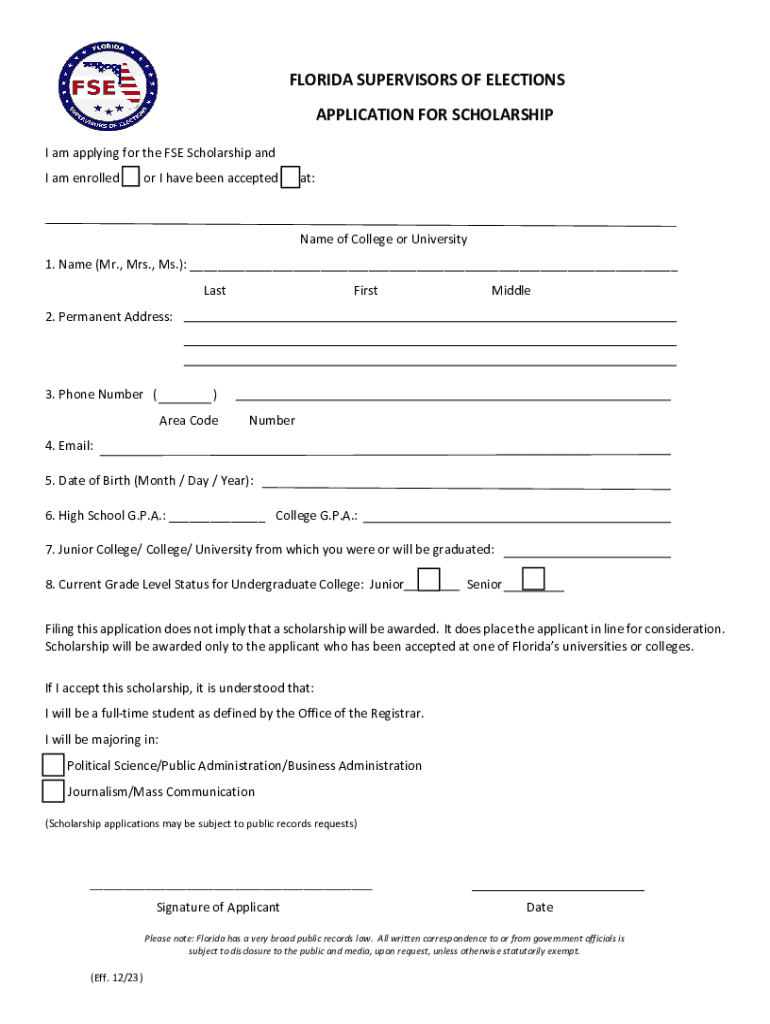 Get the free Florida Supervisors of Elections Scholarship Application