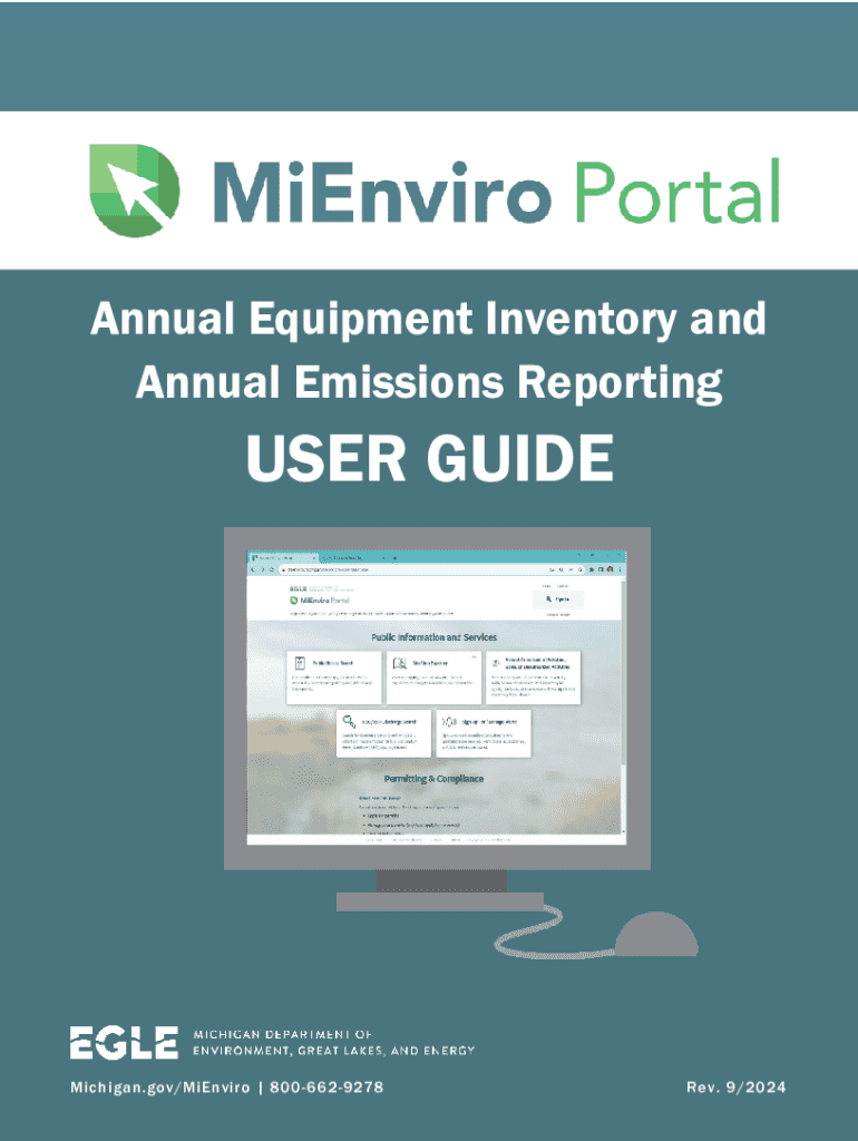 This user guide provides detailed instructions for accessing and utilizing the MiEnviro Portal for annual equipment inventory and emissions reporting. It outlines the process for creating user accounts, submitting reports, managing emissions, and compliance with state regulations.