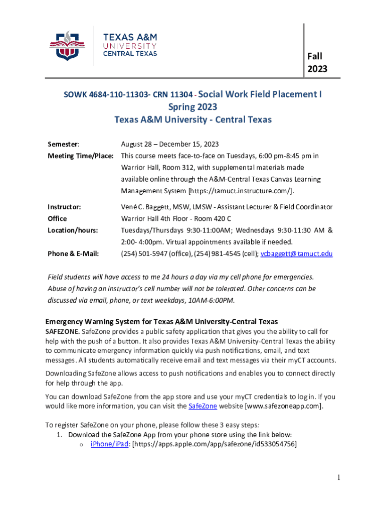 Get the free Sowk 4684-110-11303 - Social Work Field Placement I