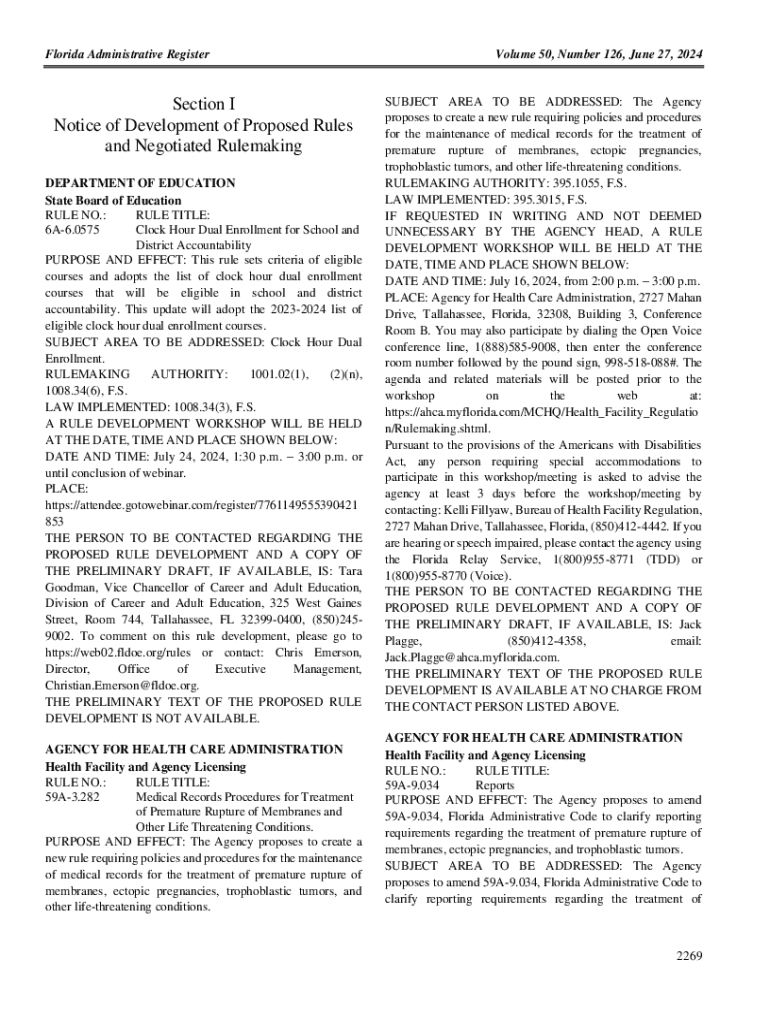 Florida Administrative RegisterSection I Notice of Development of Proposed Rules and Negotiated Rulemaking DEPARTMENT OF EDUCATION State Board of Education RULE NO.: RULE TITLE: 6A6.0575 Clock Hour