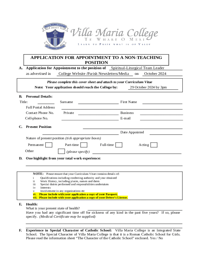 How should you fill out the Application for Appointment to a Non-teaching Position template