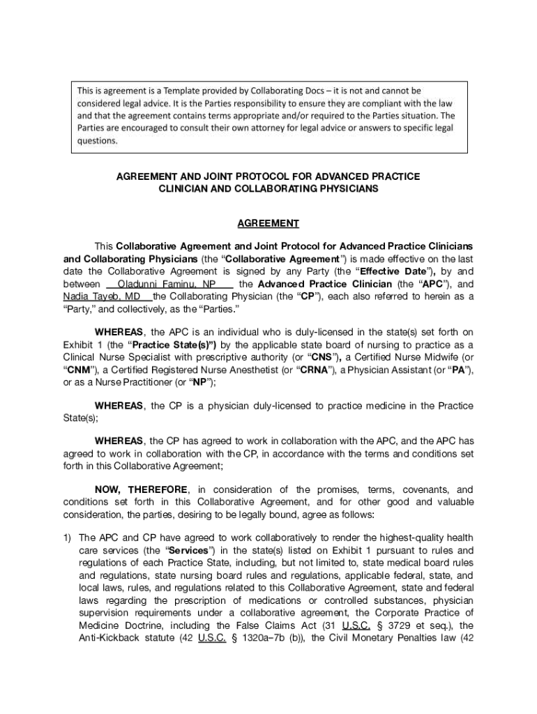 Get the free agreement and joint protocol for advanced practice