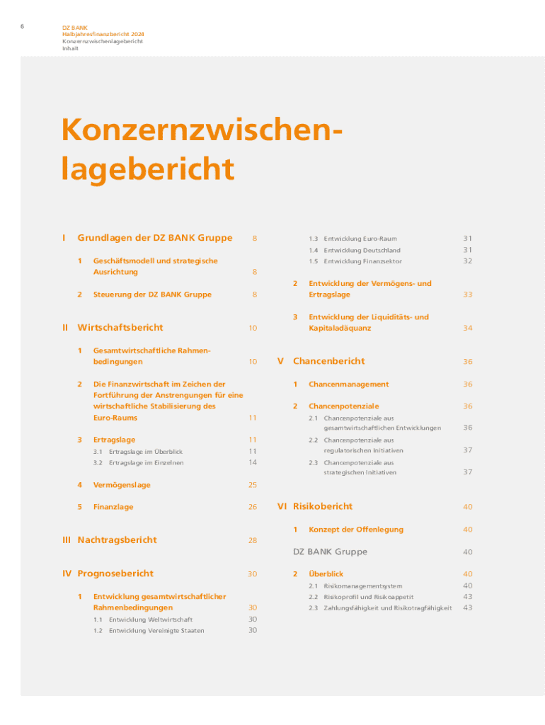 Der Halbjahresfinanzbericht 2024 der DZ BANK Gruppe bietet eine umfassende Übersicht über die wirtschaftliche Lage, das Geschäftsmodell, sowie die Risikosituation und Ertragslage. Er enthält detaillierte