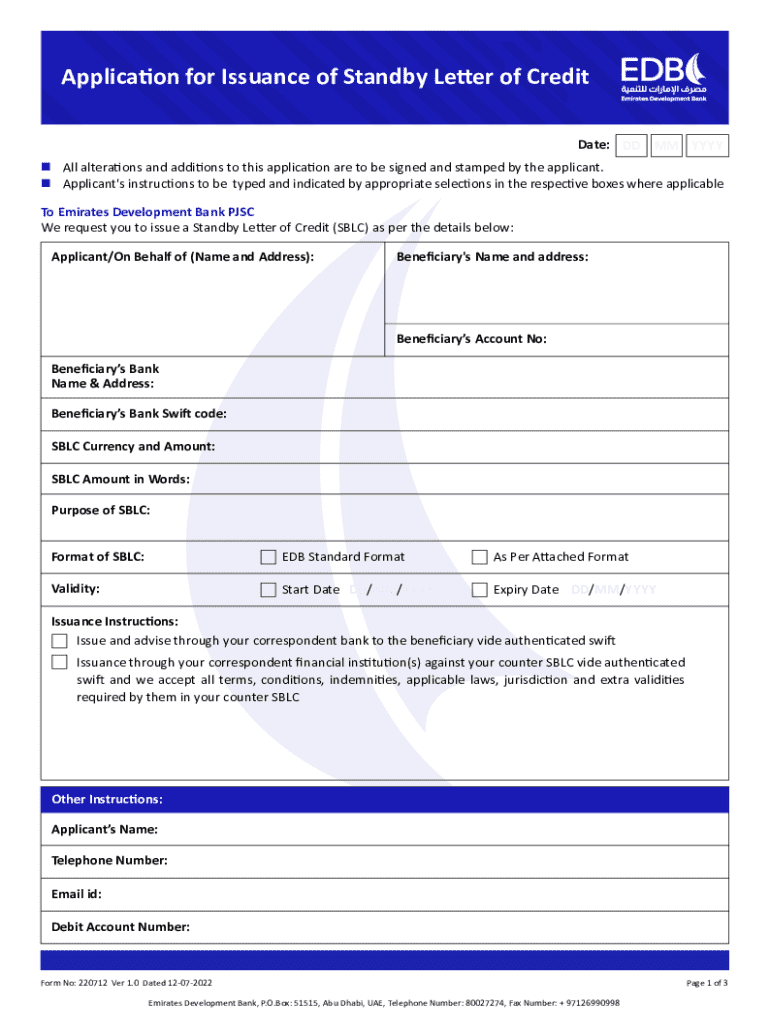 Application for Issuance of Standby Letter of Credit Date: DD MM YYYY All alterations and additions to this application are to be signed and stamped by the applicant. Applicant\'s instructions to