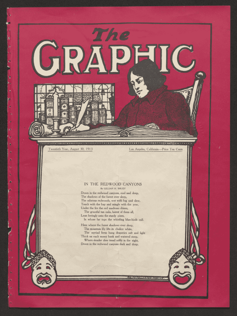 Twentieth Year, August 30, 1913Los Angeles, CaliforniaPrice Ten CentsIN THE REDWOOD CANYONS By LILLIAN H. SHUEYDown in the redwood canyons, cool and deep, The shadows of the forest ever sleep, The