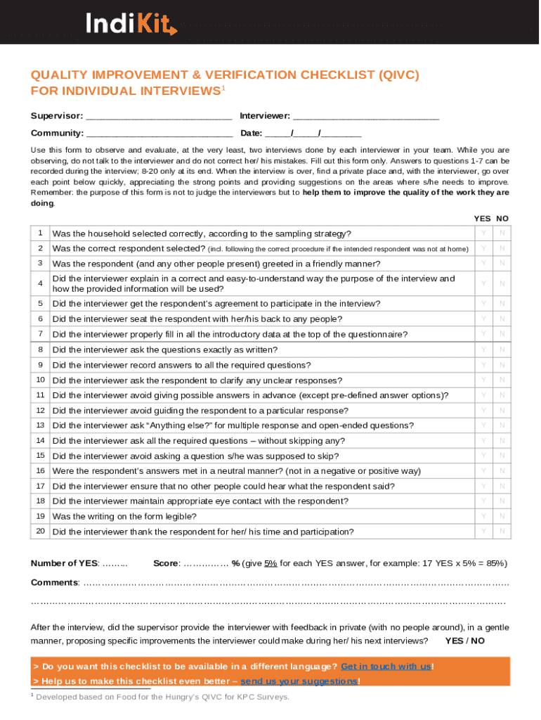 Instructions for the form Quality Checklist for C