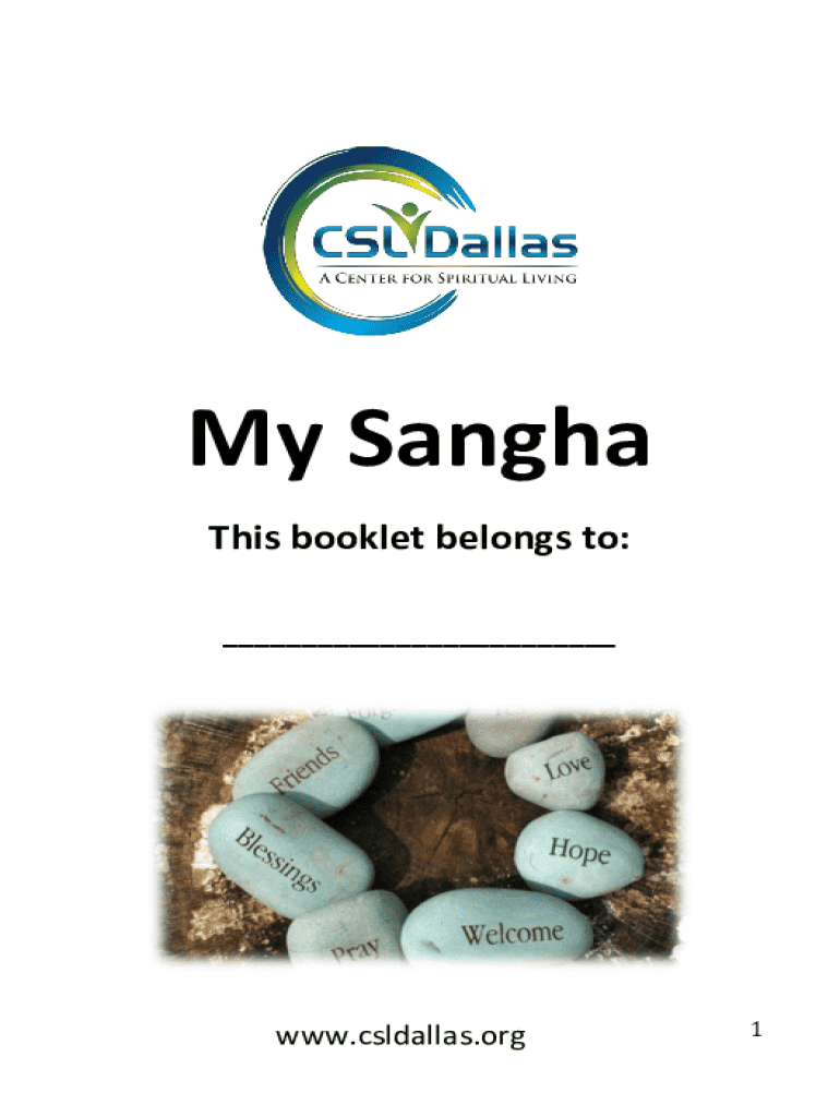 My Sangha This booklet belongs to: ___www.csldallas.org1What is Sangha? The term sangha comes from the Buddhist notion of a spiritual community in practice together. At CSLDallas, a Center for Spiritual