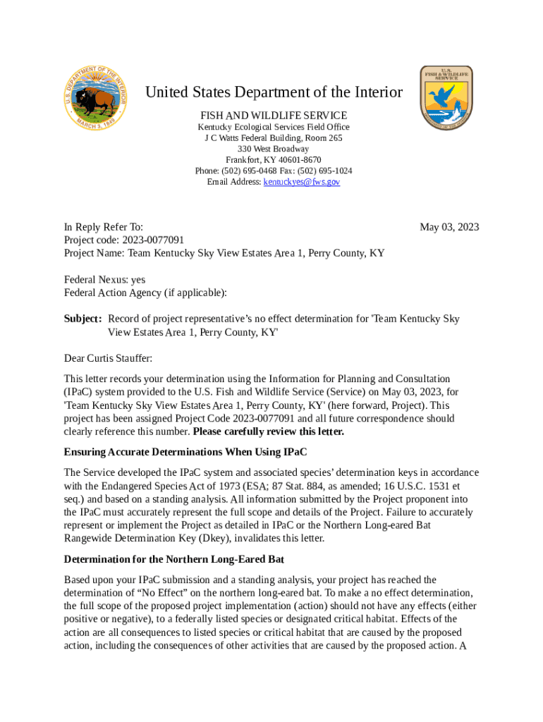 United States Department of the Interior FISH AND WILDLIFE SERVICE Kentucky Ecological Services Field Office J C Watts Federal Building, Room 265 330 West Broadway Frankfort, KY 406018670 Phone: (502)