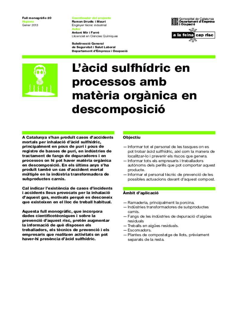 Full monogrfic 20 Higiene Gener 2013Coordinador del projecte Ramon Drudis i Mauri Enginyer tcnic industrial Autor Antoni Mir i Farr Llicenciat en Cincies Qumiques Subdirecci General de Seguretat i