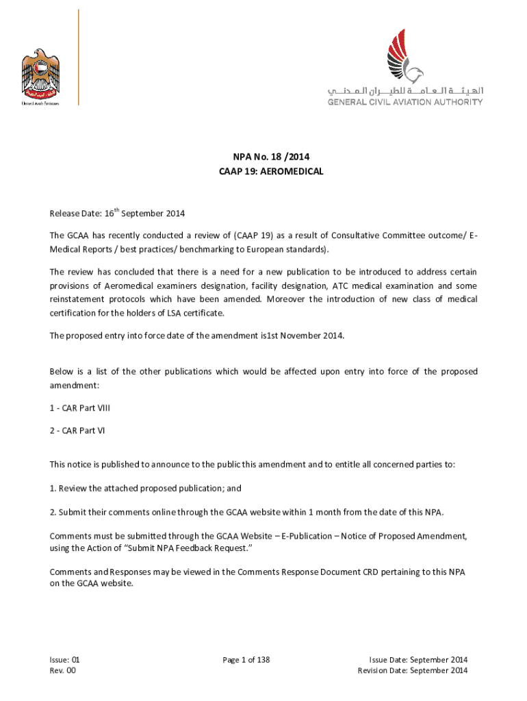 Get the free Npa No. 18 /2014 Caap 19: Aeromedical