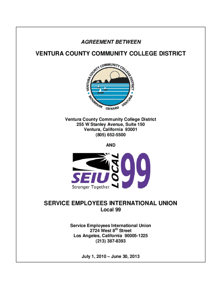 AGREEMENT BETWEENVENTURA COUNTY COMMUNITY COLLEGE DISTRICTVentura County Community College District 255 W Stanley Avenue, Suite 150 Ventura, California 93001 (805) 6525500 ANDSERVICE EMPLOYEES INTERNATIONAL