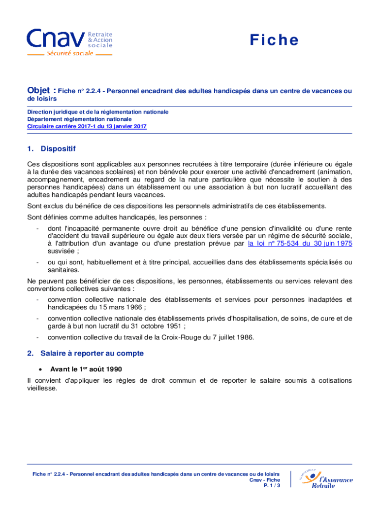 Ce document concerne les dispositions réglementaires applicables aux personnes recrutées temporairement pour des activités d\'encadrement auprès d\'adultes handicapés dans des établissements