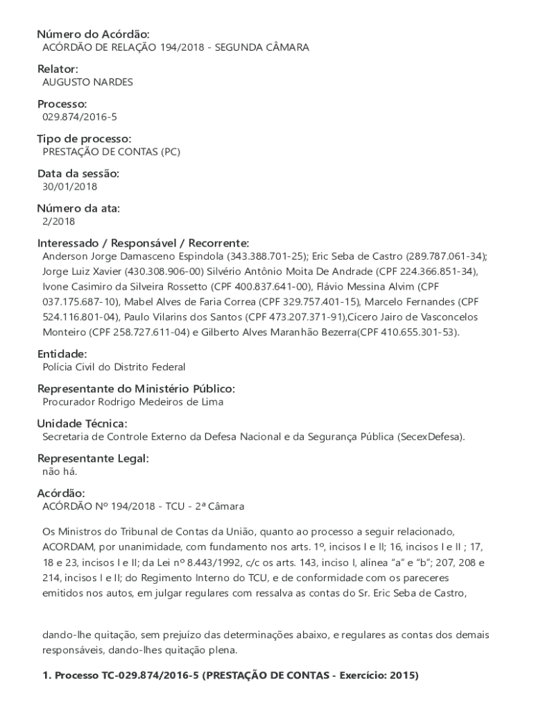 Obtenha o gratuito Nmero do Acrdo: