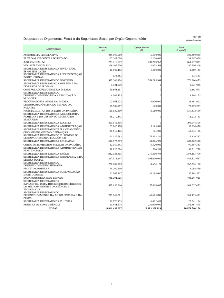 Obtenha o gratuito Despesa dos Oramentos Fiscal e da Seguridade Social por rgo Oramentrio
