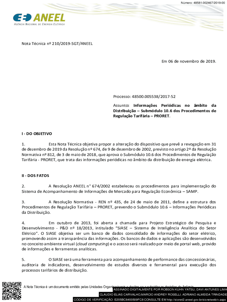 Obtenha o gratuito Nota Técnica Nº 210/2019-sgt/aneel