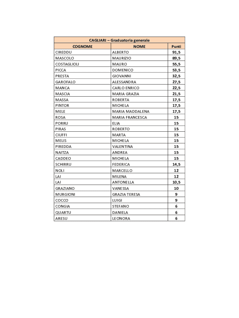 Ottieni il gratuito CAGLIARI Graduatoria generale