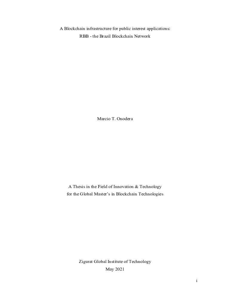 A Blockchain infrastructure for public interest applications: RBB the Brazil Blockchain NetworkMarcio T. OnoderaA Thesis in the Field of Innovation & Technology for the Global Masters in Blockchain