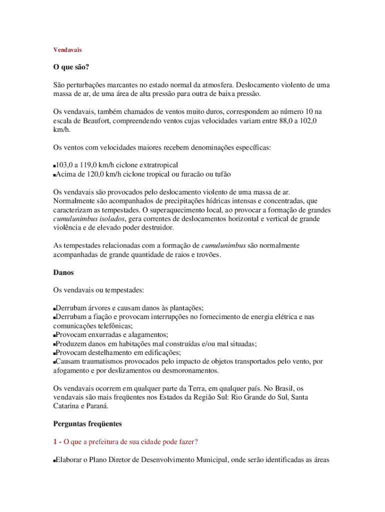 VendavaisO que so? So perturbaes marcantes no estado normal da atmosfera. Deslocamento violento de uma massa de ar, de uma rea de alta presso para outra de baixa presso. Os vendavais, tambm chamados