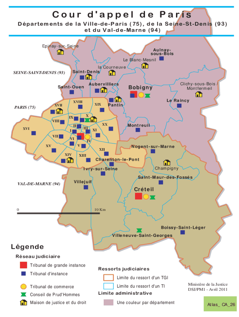 Cour d\'appel de Paris Dp artem e n t s d e la V ille de Pa ri s (7 5 ), de l a Se i ne St De nis (93) e t d u Va l de M a rne (9 4 ) EpinaysurSeineAulnaysousBois Le BlancMesnilla Courneuve SaintDenisSEINESAINTDENIS
