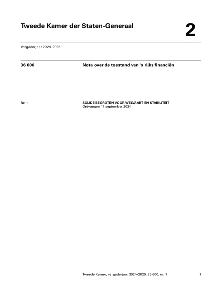 Tweede Kamer der StatenGeneraal2Vergaderjaar 2024202536 600Nota over de toestand van \'s rks financinNr. 1SOLIDE BEGROTEN VOOR WELVAART EN STABILITEIT Ontvangen 17 september 2024Tweede Kamer, vergaderjaar