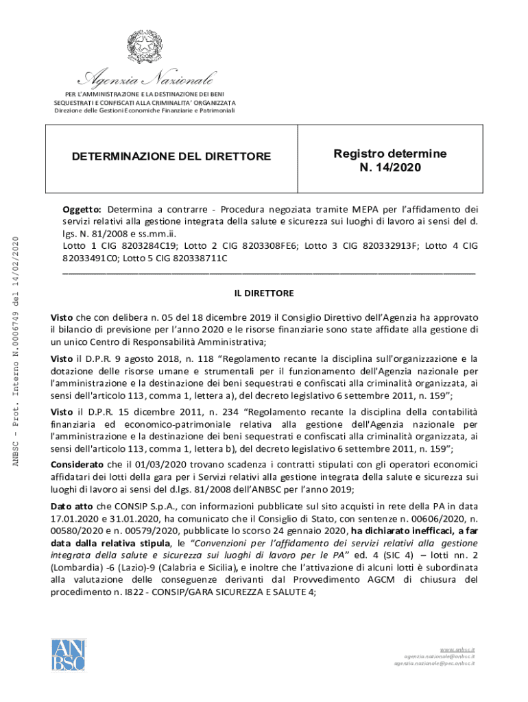 Ottieni il gratuito Oggetto: Determina a contrarre - Procedura negoziata tramite MEPA per laffida...