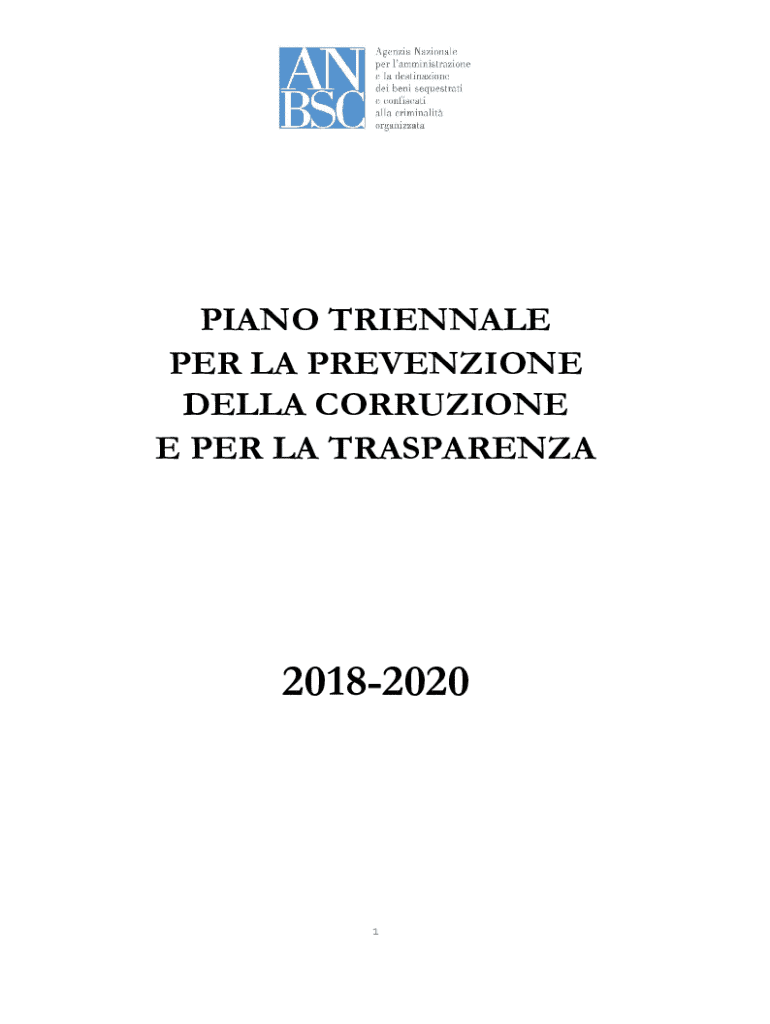 PIANO TRIENNALE PER LA PREVENZIONE DELLA CORRUZIONE E PER LA TRASPARENZA201820201SOMMARIO 1.LAGENZIA NAZIONALE PER LAMMINISTRAZIONE E LA DESTINAZIONE DEI BENI SEQUESTRATI E CONFISCATI ALLA CRIMINALIT