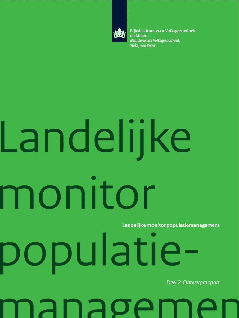 De landelijke monitor populatiemanagement deel is een systeem dat gegevens verzamelt en analyseert over de populatie in een specifiek gebied, met als doel inzicht te krijgen in demografische trends en de ontwikkeling van de bevolking.