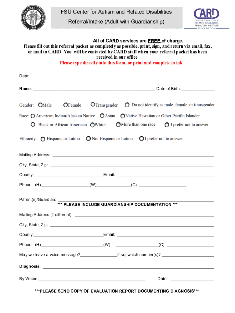Center for Autism and Related Disabilities (CARD) Providing Support and Assistance to Optimize PotentialHello,Thank you for your referral to the Center for Autism and Related Disabilities (CARD).
