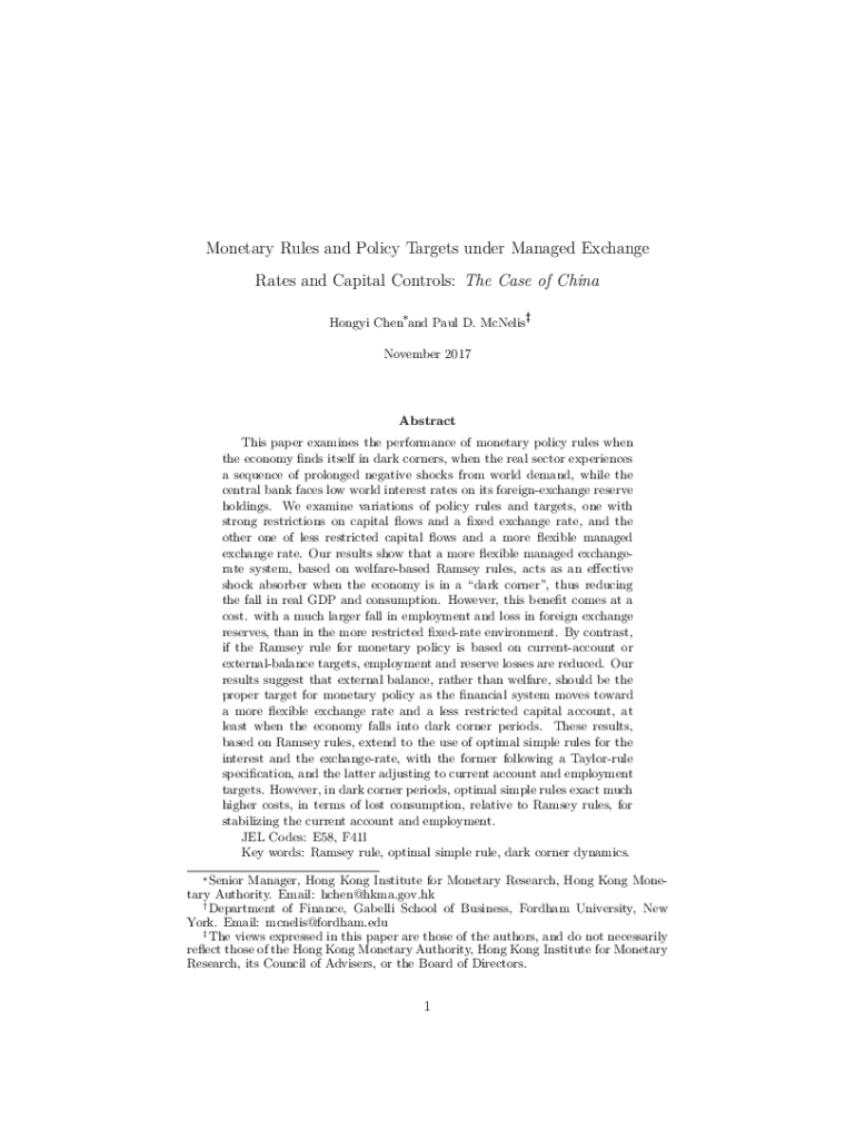 Get the free Monetary Rules and Policy Targets Under Managed ...