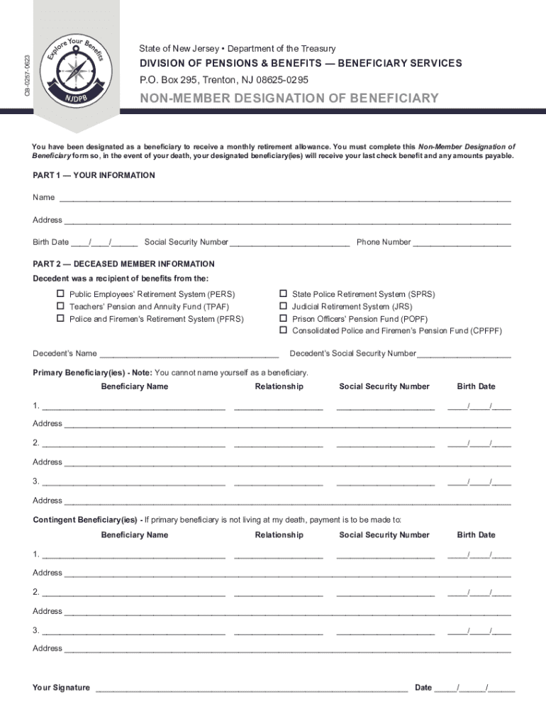 Individuals who wish to designate beneficiaries for their benefits or assets and are not part of an organization or trust that has its own designation process are required to file a non-member designation of beneficiary.