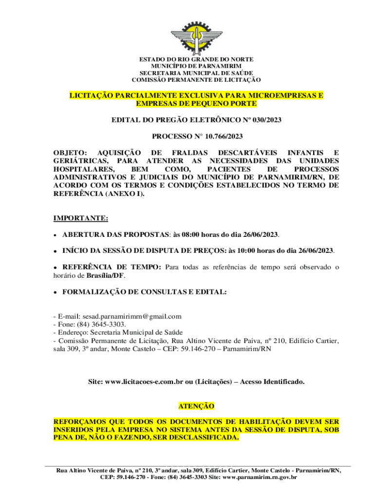 ESTADO DO RIO GRANDE DO NORTE MUNICPIO DE PARNAMIRIM SECRETARIA MUNICIPAL DE SADE COMISSO PERMANENTE DE LICITAOLICITAO PARCIALMENTE EXCLUSIVA PARA MICROEMPRESAS E EMPRESAS DE PEQUENO PORTE EDITAL