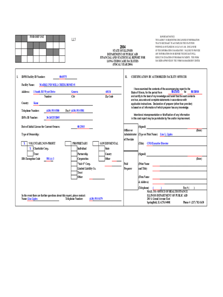 Get the free Financial and Statistical Report for Long-term Care Facilities - hfs illinois