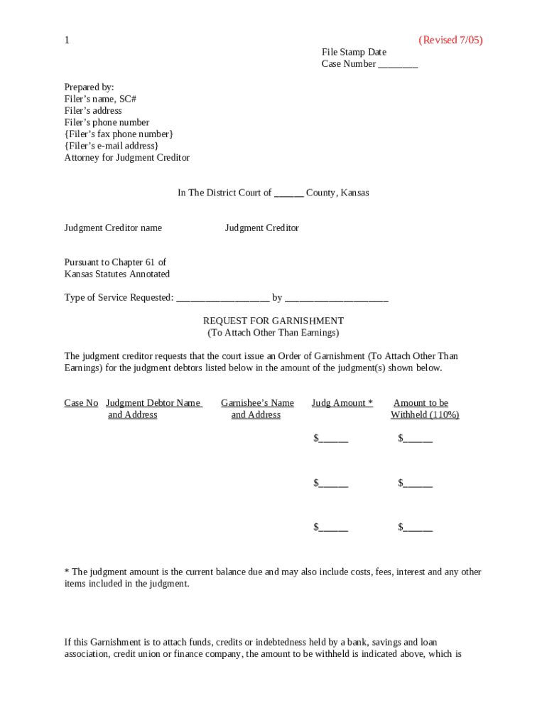 What is Request for Garnishment Form?