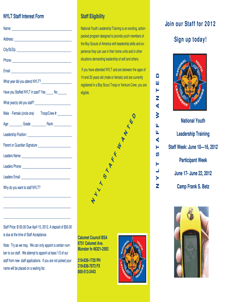 Get the free NYLTSTAFFWANTED Join our Staff for 2012 Sign ... - Calumet Council - calumetcouncil