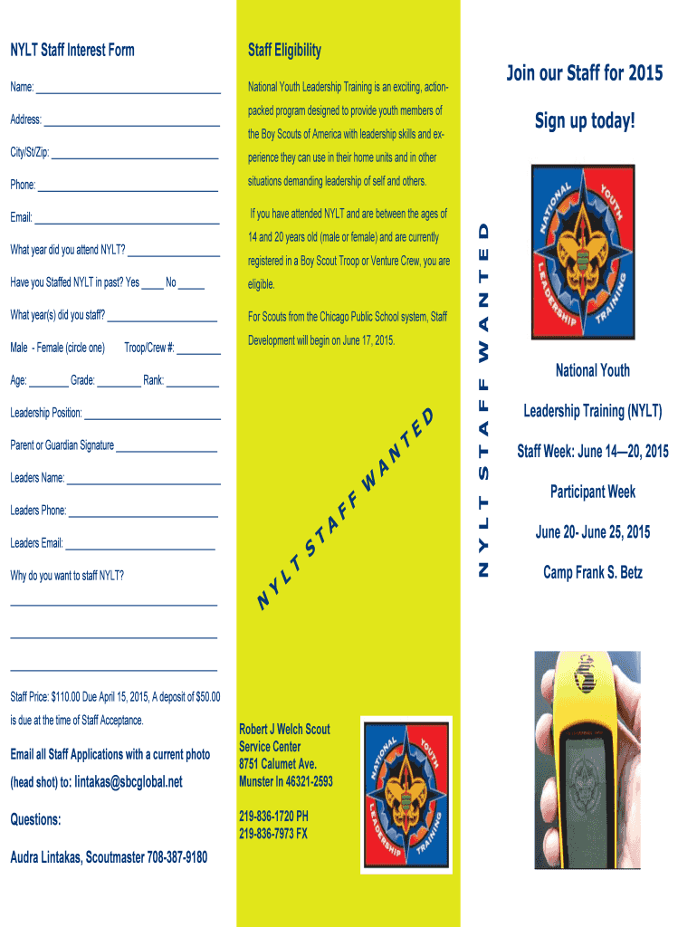Get the free NYLTSTAFFWANTED Join our Staff for 2015 Sign ... - Calumet Council - calumetcouncil