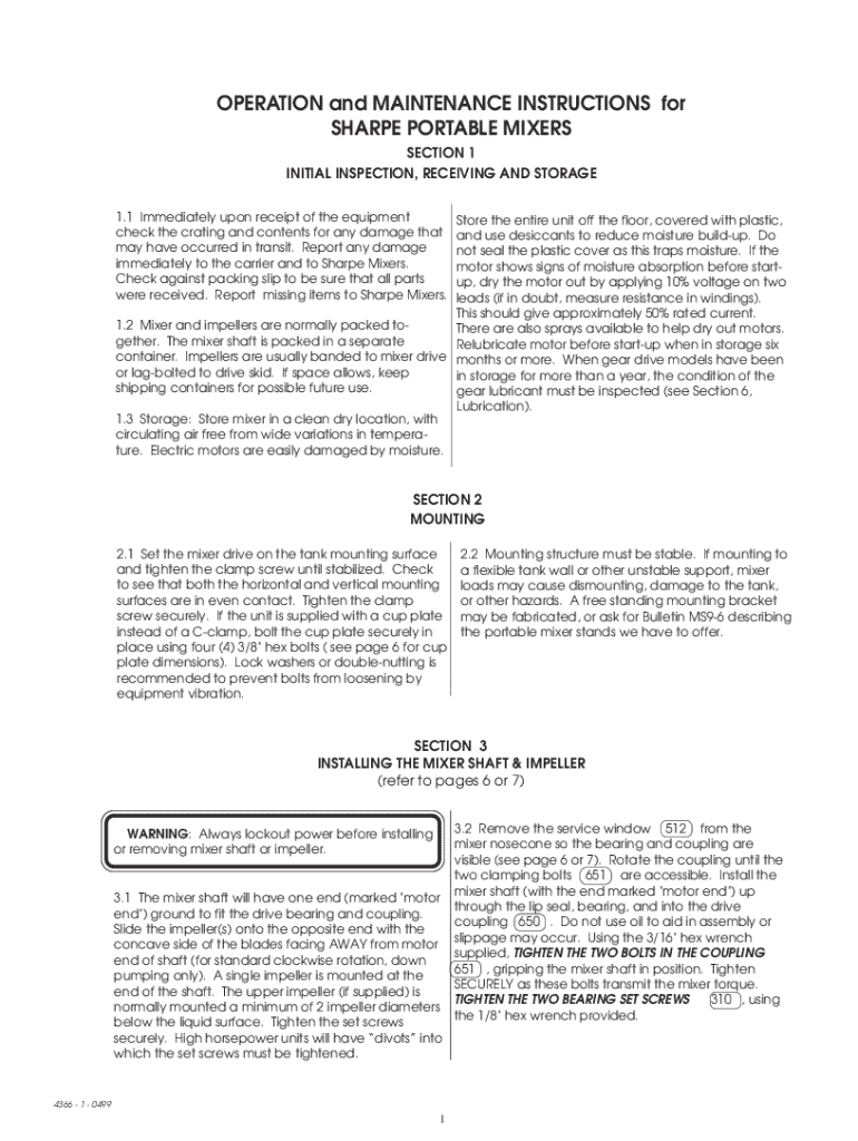 Get the free Operation & Maintenance Manual: Sharpe Mixers Liquid ...
