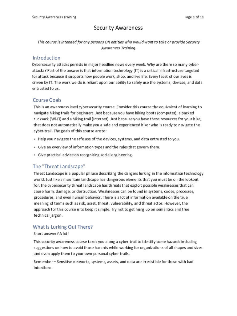 Fill out your security awareness training online with pdfFiller!