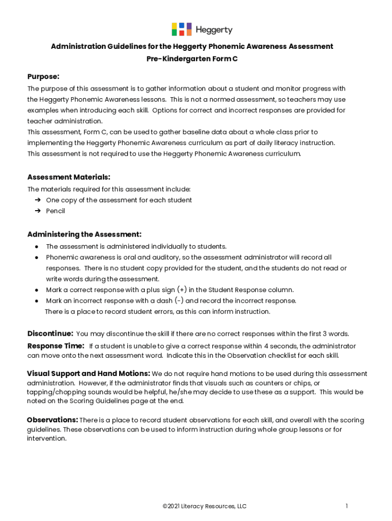 Get the free Pre-kindergarten Phonemic Awareness Assessment Form C