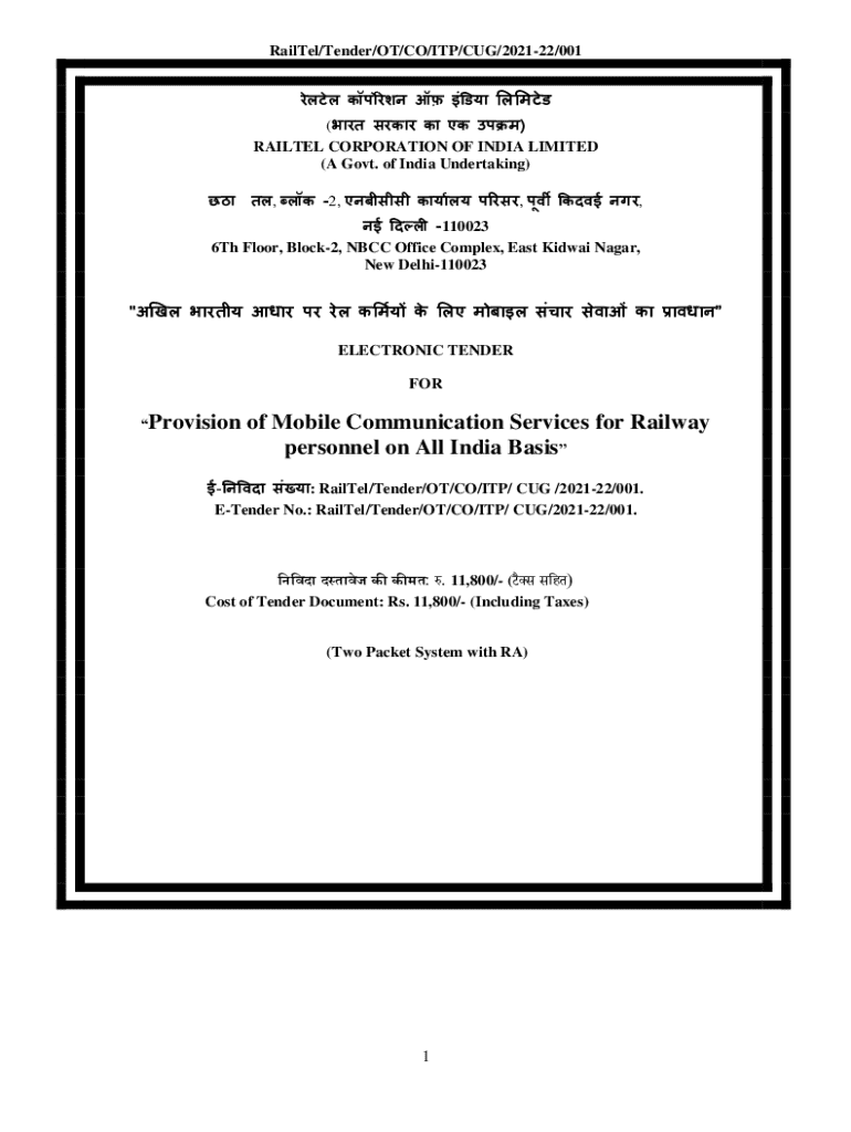 RailTel/Tender/OT/CO/ITP/CUG/202122/001 ( ) RAILTEL CORPORATION OF INDIA LIMITED (A Govt. of India Undertaking) , 2, , , 110023 6Th Floor, Block2,
