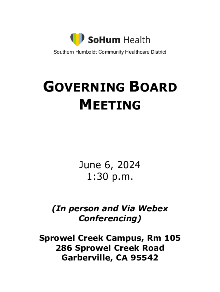 Get the free Southern Humboldt Community Healthcare District Governing Board Meeting
