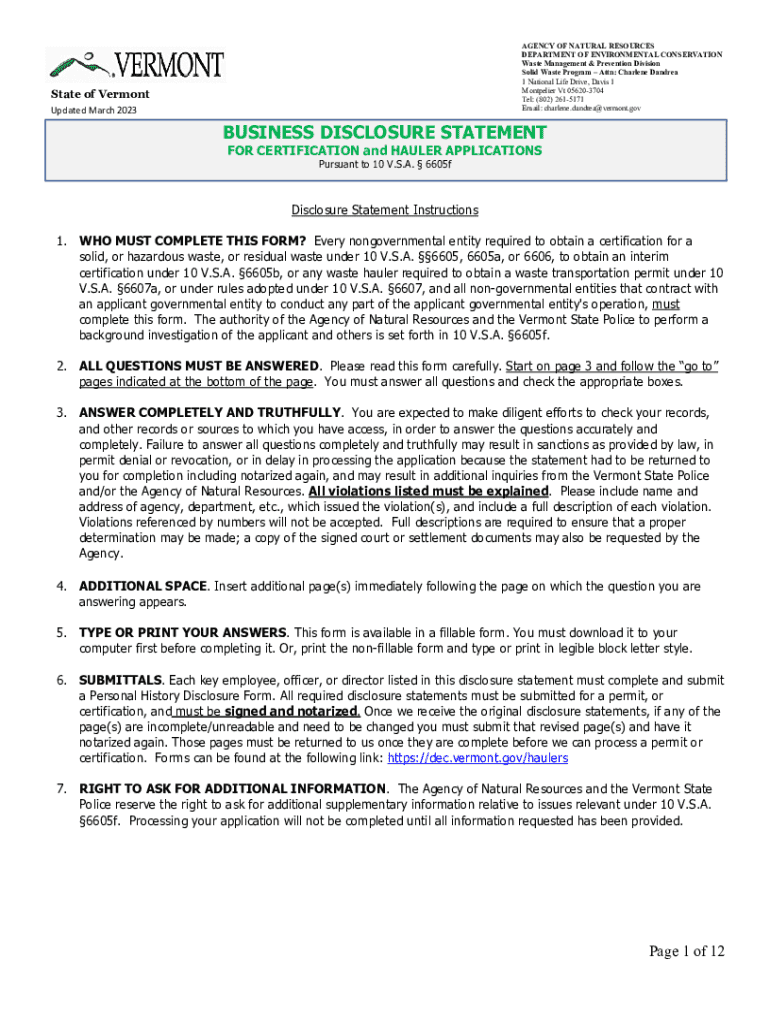 Get the free BUSINESS DISCLOSURE STATEMENT