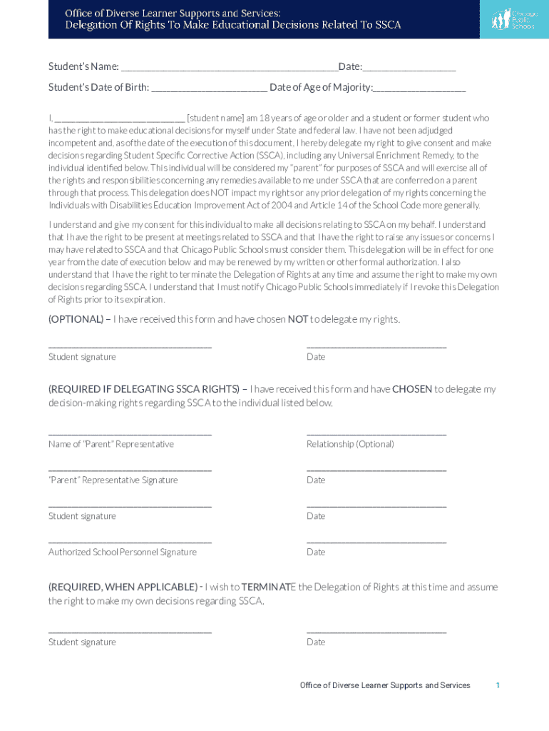Students Name: ___Date:___ Students Date of Birth: ___ Date of Age of Majority:___ I, ___ [student name] am 18 years of age or older and a student or former student who has the right to make educational