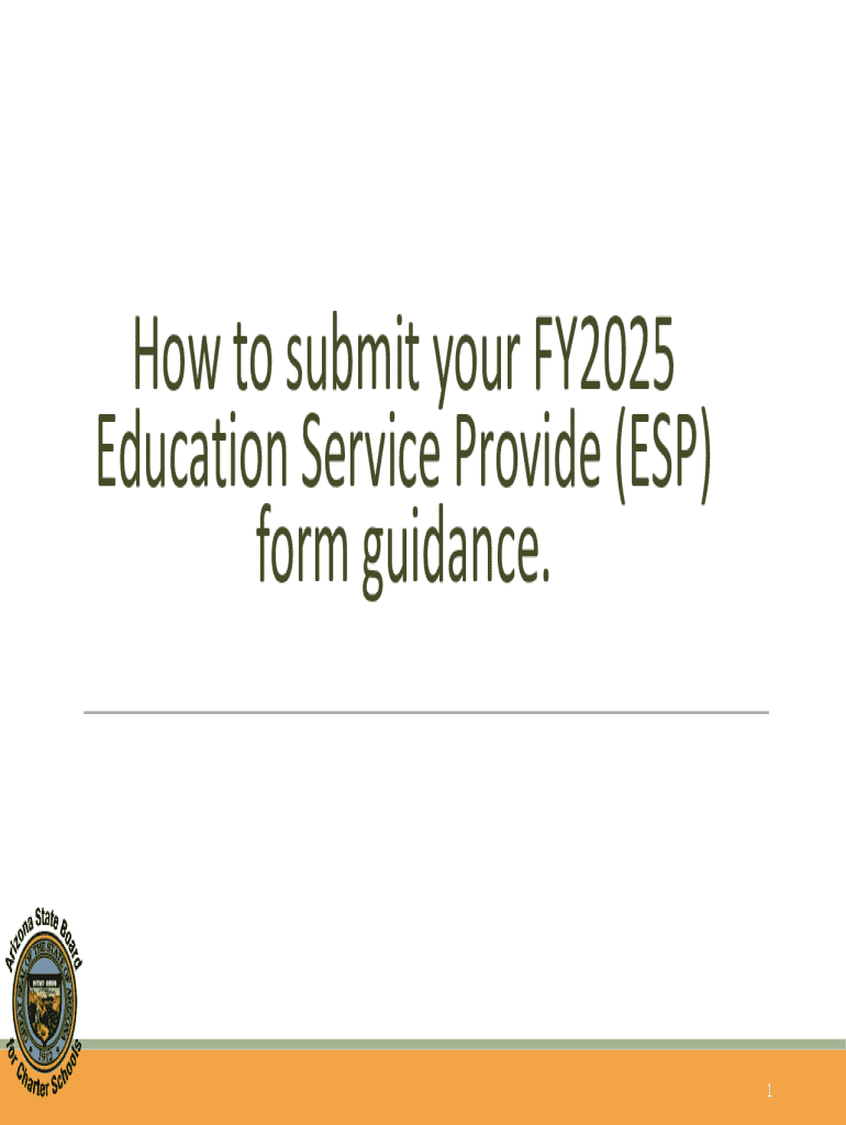How to submit your FY2025 Education Service Provide (ESP) form guidance.1 Login to ASBCS Online https://asbcs.my.site.co2 Select the Charter Holder Organization menu option. Select the the Charter