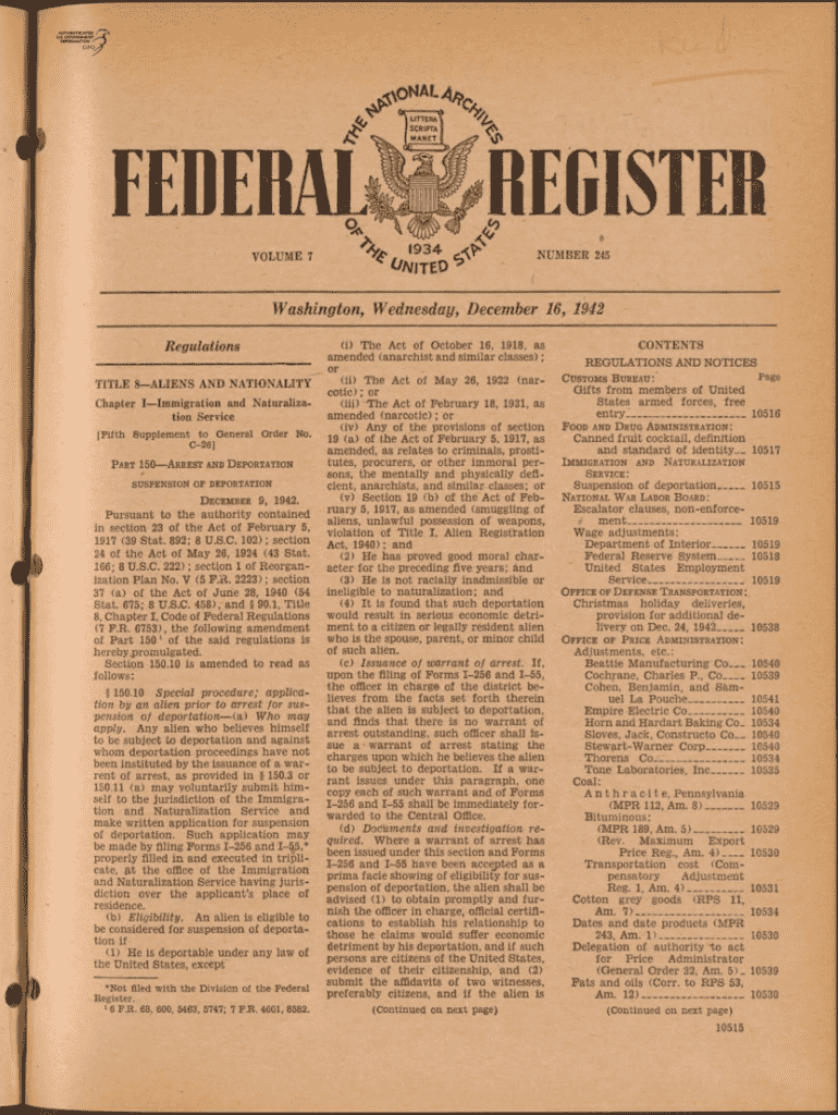 FEDERALREGISTERVOLUME 7 *1934NUM BER 245^ A fiT E O ^Washington, Wednesday, December 16, 1942 (1) The Act of October 16, 1918, as amended (anarchist and similar classes); or (ii) The Act of May 26,